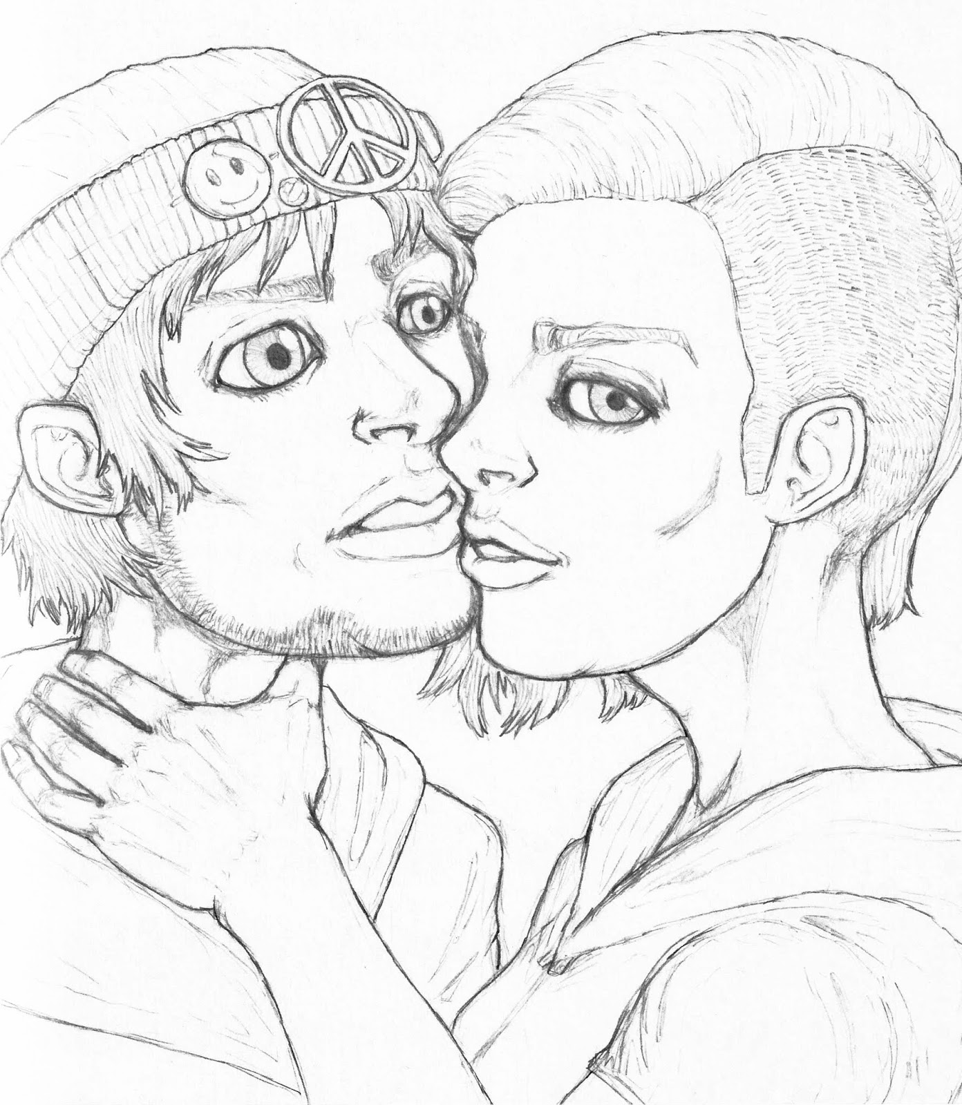 On sent bien le temps que tu passes sur tes dessins, à structurer le visage, les mains. Les mains justement souffrent encore de rigidité, mais à force d'en faire et en faire ça deviendra plus naturel ! La première image m'intrigue, on sent une certaine douceur entre les 2 personnages et la main (encore elle !) donne l'impression d'être en position pour étrangler le gars.